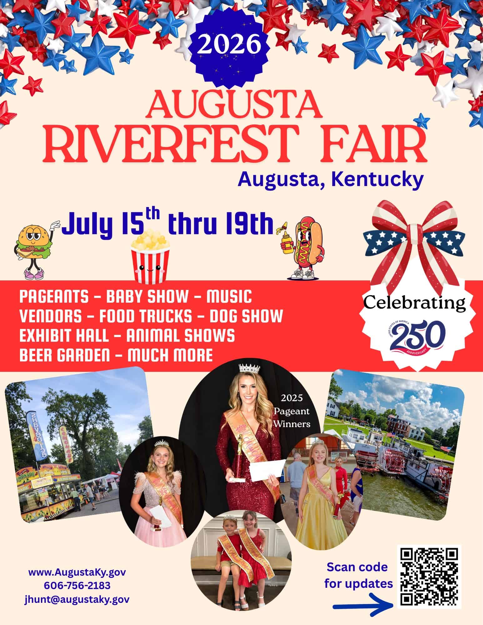 Pageants, Vendors, Food Trucks, Baby Show, Open Ceremony, Private Owned Sternwheelers, Dog Show, Beer Garden & much more!!